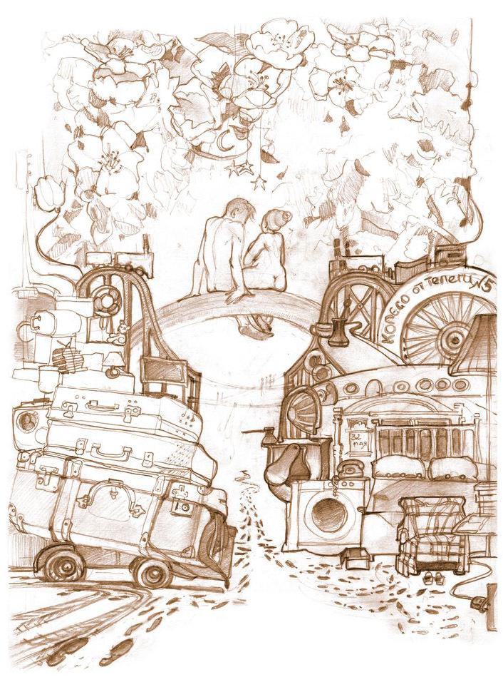 На этапе задумки, в поисках художника для сборника, мы устроили конкурс. Именно многомерное восприятие было для меня главным критерием в выборе партнера по проекту. Когда я увидела работы художника Наташи, то была потрясена уровнем глубины и многогранности ее работ. Я поняла, что мы соразмерны друг другу.