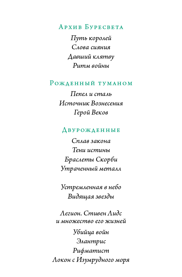 Локон с Изумрудного моря : роман / Брендон Сандерсон ; пер. с англ. И. Лебедевой, А. Третьякова. — СПб. : Азбука, Азбука-Аттикус, 2024. : ил. + вкл. (10 с.) — (Звезды новой фэнтези).