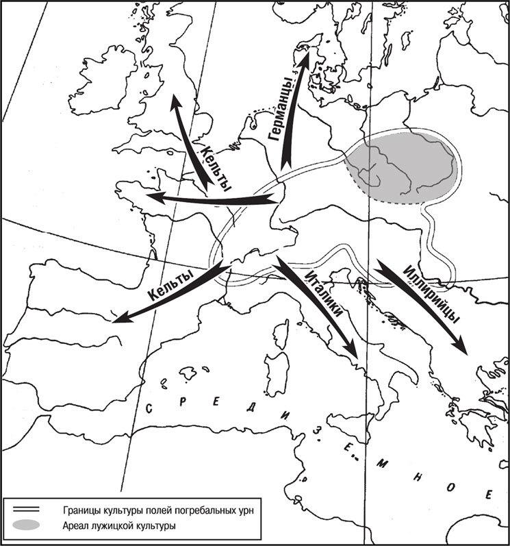 Эта культурно-историческая общность, просуществовавшая в Средней Европе с XVI по VII в. до н. э., названа археологами культурой полей погребальных урн. В ее границах, по-видимому, и завершилось формирование основных этносов древней Европы. Именно с территории культуры полей погребальных урн в Западную и Южную Европу пришли народы, известные нам по античным письменным памятникам. С конца 2-го тысячелетия до н. э. на Апеннинский полуостров проникают италики; Францию и Северную Италию в VIII–V вв. до н. э. заселяют кельты; примерно тогда же Адриатическое побережье Балкан занимают иллирийцы; а в VII в. до н. э. в Ютландии и примыкающих к ней землях по нижнему течению Рейна и Одера появляются германцы.
