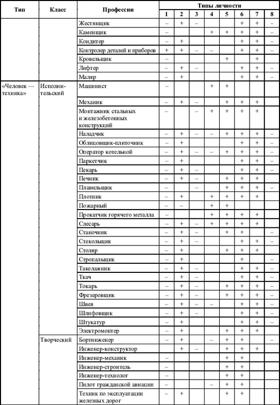 Каждому типу личности соответствует определенный тип профессий (табл. 1.1).