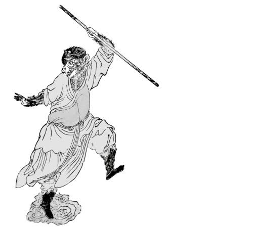 [5] По преданию, золоченый посох принадлежал еще легендарному правителю древности Юю. В главе третьей «Путешествия на Запад» описывается, как Обезьяна добыла посох у Царя-Дракона Восточного моря, с помощью волшебства уменьшила его так, что тот стал помещаться в ухе, но в битве вновь достигал гигантских размеров.
