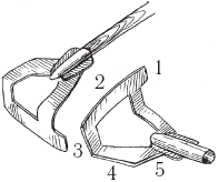 Универсальная мотыга-перевертыш с успехом заменит вам набор мотыг для разных грунтов (рис. 6) – она имеет 5 рабочих плоскостей. Лезвие 1 имеет небольшую, но острую плоскость, которая предназначена для прополки грядок без повреждений корневой системы. Более широкие плоскости 2 и 3 предназначены для работы в междурядовом пространстве, угловой подрез, образованный плоскостями 3 и 4, послужит для подрубки корней сорняков, а лезвием 5 пользуются для подрезки небольших веток. Материал для такой мотыги – нержавеющая или термообработанная сталь.