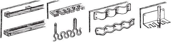 Вешалка для инструмента (см. рис. 8) поможет содержать ваш инвентарь в порядке и всегда иметь под рукой. В качестве держателей можно использовать обрезки труб подходящего диаметра или кусочки толстостенного шланга. В последнем случае для мелкого инвентаря в держателях сделать разрез и вытащить его будет легко.