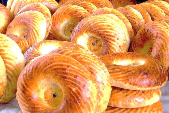 This bread, which aims to increase the firmness and improve the taste of homemade bread, is being forgotten. The reason is that there is not always a jizz in every home. Gather the burnt jizz and (sort) it and add it to the dough. Dissolve the salt with the yeast in warm water, add the flour and water piece by piece, knead the dough to a medium-soft consistency, and wrap it up to increase it and take it to a warmer place. Knead most of the dough in the pan, then take it on the board and spread it by hand to a thickness of 1.5 — 2 cm. Place the jizz flat on the surface of the dough and roll it out from one edge of the dough. You knead with your palms on both sides of the roll so that the jizz mixes well into the rolled dough, with the right palm moving backwards and the left palm forward several times. After that, you will be divided into 150—200 gr. You make a circle-shaped loaf by crushing the balls in the shape of a ball with the fist of your right hand, then with the palms and fingers of both hands. The edges of the bread should be 2 — 3 cm thick and the middle 1 cm thick. Beat in the middle of each loaf and bake in the oven until tender. Before serving, take out a little tob and bring it with tea as a standalone dish. Ingredients: 1 kg of flour, 50 g of yeast, 2 cups of water, 300 g of jizza, 2 teaspoons of salt.