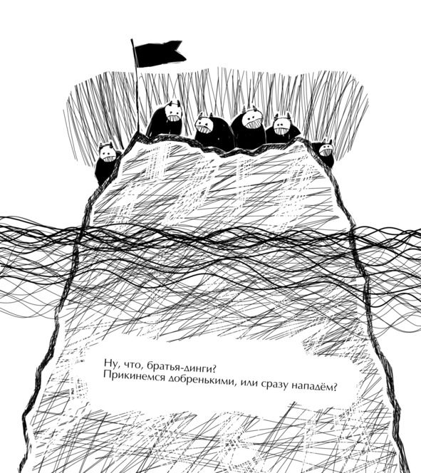 — Ну чего-чего, холодных у батареи отогревать надо, горячих да тёпленьких — в прорубь головой, а осенним клиентам клеем нос замазывай, чтоб на ковёр не капал, во! Да ладно, Гринь, тебе про бизнес этот дурацкий расспрашивать, айда лучше твою стену выкрасим розовым с голубыми сомелями! (СОМЕЛЬ — это по-костиковски САМОЛЁТ)