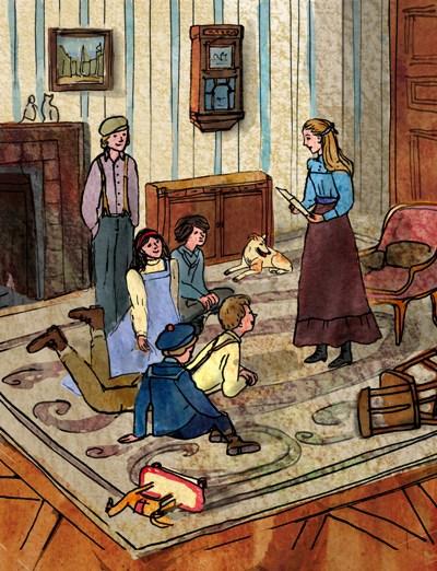 Дора у нас самая старшая, старший из мальчиков — Освальд, чуть помладше его Дикки. Освальд получил премию за латинский язык в подготовительной школе, а Дикки хорошо знает арифметику. Элис и Ноэль — близнецы, им по десять лет, а наш самый младший брат — Гораций Октавиус.