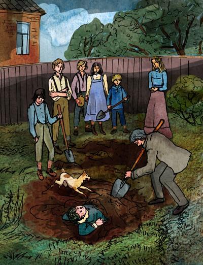 — Дело обещает быть долгим, но приятным, — сказал дядя Альберта, потирая руки и глядя на голову Альберта, торчащую из дыры. — Принесу-ка я другую лопату.