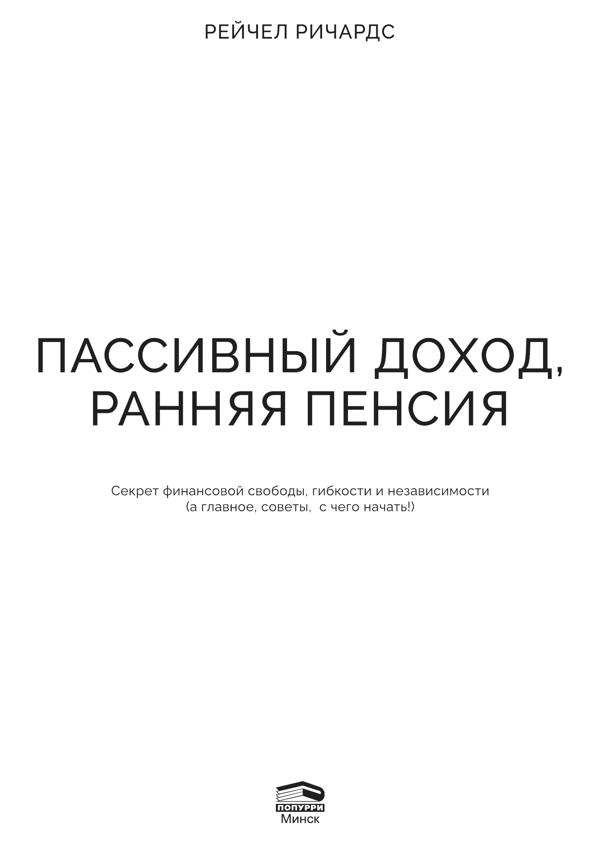 Пассивный доход, ранняя пенсия : Секрет финансовой свободы, гибкости и независимости (а главное, советы, с чего начать!) / Р. Ричардс ; пер. с англ. О. Белошеева. — Минск : Попурри, 2023.