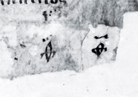 На рис. 1.7–1.10 мы приводим изображения церковно-славянских цифр – номеров страниц: 7, 9, 10 (переделано из 9), 11 (переделано из 10). ХОРОШО ВИДНО, ЧТО С НОМЕРАМИ СТРАНИЦ ТВОРИЛОСЬ ЧТО-ТО НЕЛАДНОЕ. Их, по-видимому, неоднократно исправляли. Например, на странице с номером 9 ее номер даже проставлен дважды. Явно видны следы каких-то подчисток.