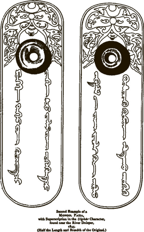 Рис. 0.5. «Монгольская» пайдзt, обнаруженная около Днепра в 1845 году. Взято из [1078], т. 1, вклейка между стр. 352–353