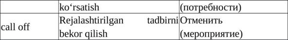 Qo‘llanmada turli janrlarda: intervyu, ommaviy nutq, maqola, muharrirga xat va sar’atlarda idiomalar va frazeologik fe’llarning qo‘llanilishiga misollar keltirilgan. Bundan tashqari, ularning yig‘ilishlar, taqdimotlar, muzokaralar va telefon orqali suhbatlar kabi turli ish muloqoti sohalarida qo‘llanilishi ko‘rib chiqilgan.