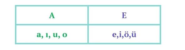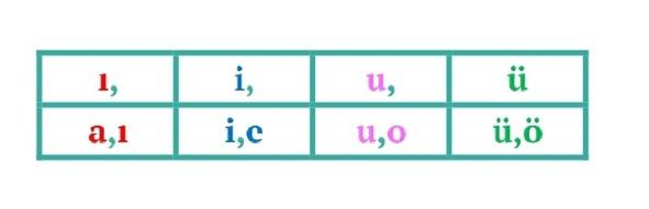 Итак, всего в турецком алфавите 8 гласных букв. (a, ı, u, o, e, i, ȍ, ü).
