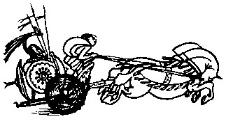 На войне эти знатные мужи выступили впереди остального войска и отличались пышностью своего вооружения. Сверху их закрывал шлем, посредине панцирь и со всех сторон щит. Одетый таким образом, знатный муж ехал в бой на парной колеснице с кучером — спокойно и уютно, как в трамвае.