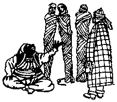 Те из воинов, которые не убили ни одного врага, не могли принимать участия в пиршестве за неимением своей посуды и наблюдали издали за торжеством, терзаемые голодом и угрызениями совести.