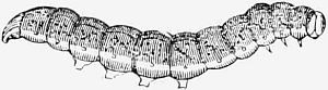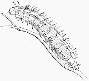 The caterpillar itself is green, with a reddish line on the back and on each side; and it glides over the surface of the leaves something after the manner of a slug, without exhibiting any very apparent motion of its short legs and claspers.