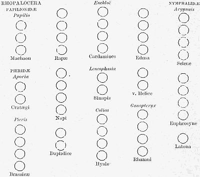 The chrysalides are generally attached by the 'tail,' and further secured by a silken cord round the body, as we have already observed in the case of the Pieridæ.