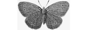 The under side, shown in the accompanying woodcut, is ashy brown; warm in the female, but paler in the male. The hind wings, and sometimes all four, are bordered with orange spots; and this species may be distinguished from Astrarche by the presence of two black spots, in white rings, near the base of the fore wings.