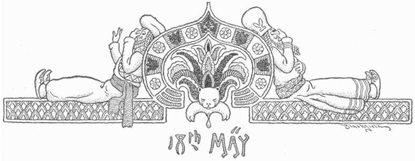 As we were leaving this grove my eyes fell upon an upturned slab that seemed to have a meaning. It was lying at our feet, partly hidden by the tall grass, having fallen from the columns that supported it. Upon its surface were strange characters in bold relief, as sharp and clear as when chiselled ten centuries ago. I pointed it out to Nōfūhl, and we bent over it with eager eyes.