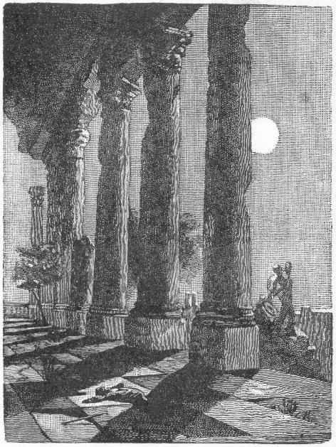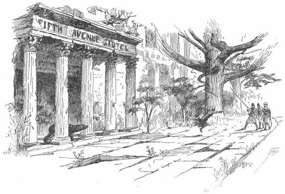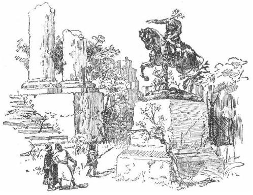 We wandered along through the thick grass, Nōfūhl and I, much excited over our discoveries and delighted with the strange scene. The sunshine is of dazzling brightness, birds are singing everywhere, and the ruins are gay with gorgeous wild flowers. We soon found ourselves in what was once a public square, now for the most part a shady grove.[1] [1] Afterward ascertained to be the square of the City Hall.