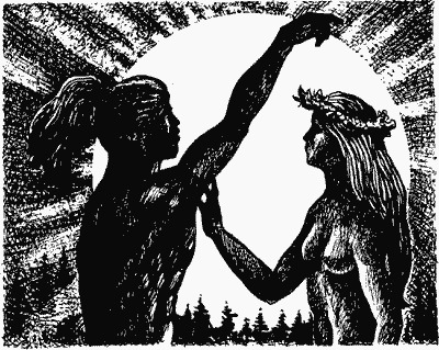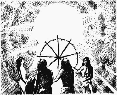 Женщины украсили свои плащи пучками разноцветной шерсти, окрашенной алой корой ольхи и черным дымом можжевельника. Старая Лото скрылась в женском шалаше. Она должна была выйти оттуда потом, в середине праздника.