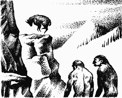 Юн подхватил свое копье и быстрыми шагами направился на запад, слегка отклоняясь вправо к реке. Он не думал о медведе, который остался сзади и пожирал добычу, не думал также о становище своих братьев-охотников. Он направлялся к женскому стойбищу отнести своему голодному сыну первую добычу этой весны.