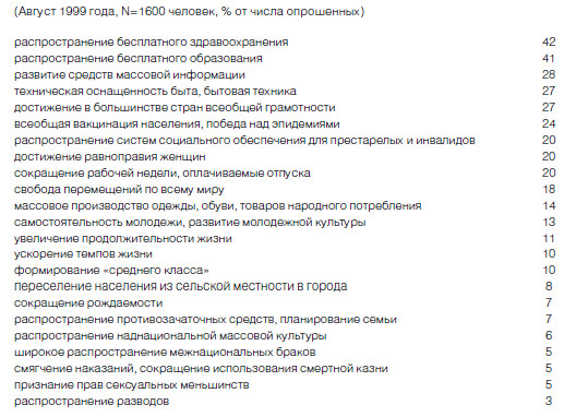 (Август 1999 года, N=1600 человек, % от числа опрошенных, здесь и далее ответы ранжированы по частоте упоминаний)