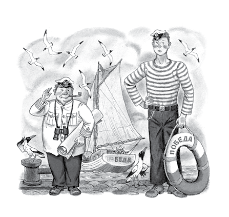 Тут в одной из них мне бросается в глаза фотография: в левом углу я, в правом мой старший помощник Лом, а посредине наша красавица яхта и подпись: «Капитан Врунгель и яхта “Беда”», на которой он отправляется…»