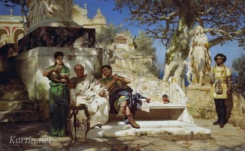 57. Ardea belonged to the Rutuli, who were a nation of commanding wealth, for that place and period. This very fact was the cause of the war, since the Roman king was eager not only to enrich himself, impoverished as he was by the splendour of his public works, but also to appease with booty the feeling of the common people; [2] who, besides the enmity they bore the monarch for other acts of pride, were especially resentful that the king should have kept them employed so long as artisans and doing the work of slaves. [3] An attempt was made to capture Ardea by assault. Having failed in this, the Romans invested the place with intrenchments, and began to beleaguer the enemy. [4] Here in their permanent camp, as is usual with a war not sharp but long drawn out, furlough was rather freely granted, more freely however to the leaders than to the soldiers; the young princes for their part passed their idle hours together at dinners and drinking bouts. [5] It chanced, as they were drinking in the quarters of Sextus Tarquinius, where Tarquinius Collatinus, son of Egerius, was also a guest, that the subject of wives came up. [6] Every man fell to praising his own wife with enthusiasm, and, as their rivalry grew hot, Collatinus said that there was no need to talk about it, for it was in their power to know, in a few hours’ time, how far the rest were excelled by his own Lucretia. [7] “Come! If the vigour of youth is in us let us mount our horses and see for ourselves the disposition of our wives. Let every man regard as the surest test what meets his eyes when the woman’s husband enters unexpected.” They were heated with wine. “Agreed!” [8] they all cried, and clapping spurs to their horses were off for Rome. Arriving there at early dusk, they thence proceeded to Collatia, where Lucretia was discovered very differently employed from the daughters-in-law of the king. [9] These they had seen at a luxurious banquet, whiling away the time with their young friends; but Lucretia, though it was late at night, was busily engaged upon her wool, while her maidens toiled about her in the lamplight as she sat in the hall of her house. [10] The prize of this contest in womanly virtues fell to Lucretia. As Collatinus and the Tarquinii approached, they were graciously received, and the victorious husband courteously invited the young princes to his table. It was there that Sextus Tarquinius was seized with a wicked desire to debauch Lucretia by force; not only her beauty, but her proved chastity as well, provoked him. [11] However, for the present they ended the boyish prank of the night and returned to the camp.