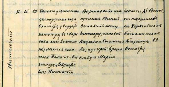 Единокровная сестра Вацлава Нижинского — Марина Фоминична, виделась со своим Великим братом один раз — в раннем детстве и прожила совершенно другую жизнь в другой стране, можно сказать, в другой цивилизации, нежели чем он. И казалось бы, что их судьбы никак не пересекались и ничто их не связывало. Но однажды, в июне 1973 года, в советскую перенаселённую коммуналку на Арбате в Москве, где жила Марина Фоминична, пришла пожилая женщина, европейская аристократка в нескольких поколениях, говорящая на семи языках, и заплакала, увидев, как бедно живёт сестра её Великого мужа — Вацлава Нижинского. И у обеих женщин была одинаковая фамилия, потому что, будучи замужем, Марина Фоминична никогда не меняла свою фамилию и не брала двойную. Всю свою жизнь она была — Нижинская.