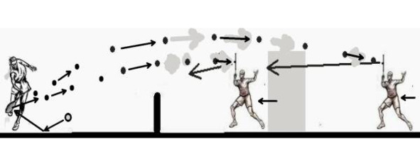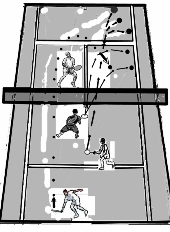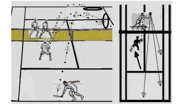 5. При ударах по средним и длинным свечам игрок-сеточник бежит за мячом, стараясь его обязательно перегнать уже к предполагаемой зоне удара.