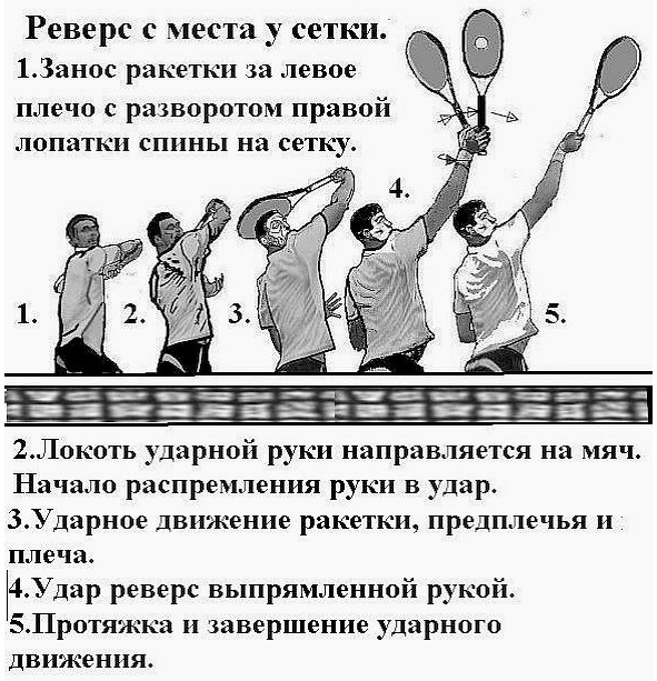 Реверс у сетки делает игру более неожиданной для соперника, особенно в парных встречах. Надо «убивать» любую короткую и неудачную свечу соперника. Техника удара: