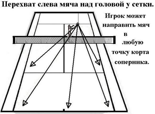 Рис. 30 Мяч левой свечи переброшен через игрока у сетки