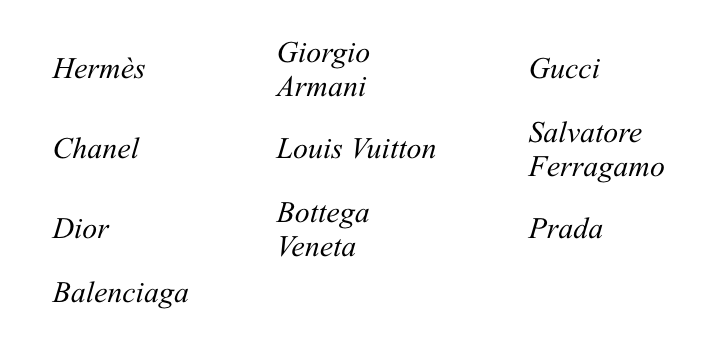 Какие модные дома можно отнести к числу элитных? Большинство обозревателей, пишущих на эту тему, упоминают какие-то очевидные названия, но никогда не составляют такого рода списков. Они понимают, что рискуют «пропустить» тот или иной бренд, а это чревато протестами некоторой части читателей и возмущением — и даже «репрессивными мерами» — со стороны соответствующей компании. А какому журналисту хочется, чтобы его перестали приглашать на модные показы и закрытые светские мероприятия?