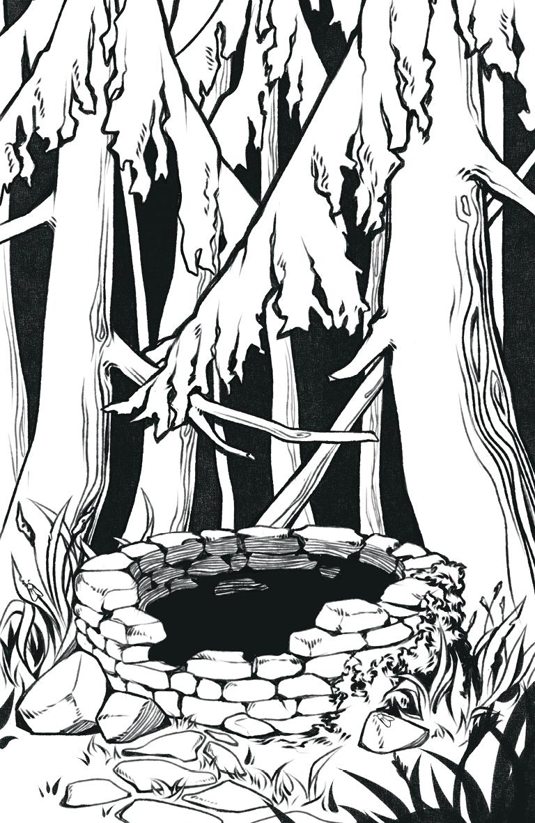 Неподалеку от места их обеда, скрытый за несколькими многовековыми елями и скалами, находился колодец – широкий, с десяток футов в диаметре. Часть горловины обвалилась, и серые булыжники, упавшие рядом, покрылись мхом. Приблизившись, Кай крепко сжал в руке гальку, подобранную с берега озера, отчего на нем оказалась капля крови – видимо, шип розы глубоко вошел в кожу. Не думая, Кай бросил его в темнеющее жерло.