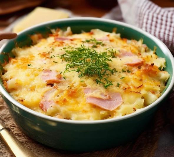 Гратен из картофеля с луком и ветчиной