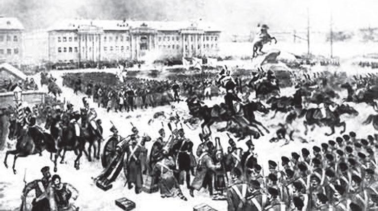 Штабс-капитаны Л.-гв. Московского полка князь Д.А. Щепин-Ростовский и Михаил Бестужев и генеральский адъютант штабс-капитан Александр Бестужев пришли в казармы московцев и с помощью грубого примитивного обмана взбунтовали простых солдат, сыграв на их чаяниях. Заговорщики объявили, что «добрый царь» Константин хочет уменьшить срок солдатской службы и вообще всячески облегчить жизнь солдат, поэтому Николай не пускает его на престол, что воцарение Николая грозит солдатам неисчислимыми бедствиями и каждого, кто присягнет Николаю, ждет суровое наказание при появлении Константина. После споров, угроз, свалки, борьбы за знамя и избиения генералов заговорщикам удалось вывести из казарм несколько рот, которые они привели на Сенатскую площадь. Сенат уже успел присягнуть новому государю, сенаторы разъехались, и офицерам-бунтовщикам ничего не оставалось, как стоять на площади у знаменитого памятника Петру I – Медного всадника, и ждать подхода других восставших частей. Солдат-московцев они построили в каре (боевое построение в виде четырехугольника, способное отражать атаки со всех сторон).