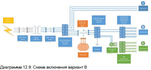 •Обеспечить питание систем охлаждения и вентиляции от основного и резервного источника питания.
