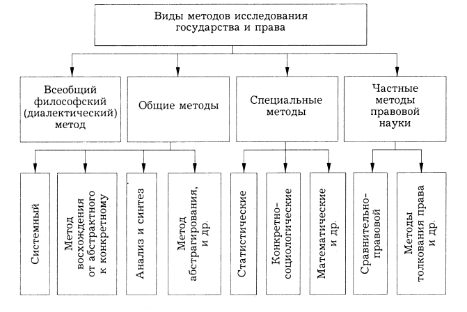Методология теории государства и права. Философские основы теории государства и права как всеобщие методы. Диалектико-материалистический метод в изучении государства и права. Общенаучные приемы (анализ, синтез, обобщение, сравнение, абстрагирование, аналогия, моделирование, структурно-функциональный и системный подходы и т. п.). Частнонаучные методы (конкретно-социологический, статистический, исторический, кибернетический и др.).