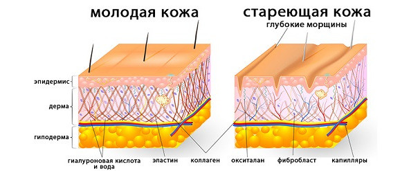 Гиалуроновый путь старения. Сложное биологическое соединение — гиалуроновая кислота. Ее молекулы находятся в межклеточном пространстве кожи как стабильный гель с водой. Именно через этот гель выводятся из кожи шлаки, проникают различные вещества включая косметические. С возрастом гелиевая структура становится менее проницательной, затрудняется обмен веществ, что естественно сказывается на коже. В каждом организме присутствует фермент предназначение, которого разрушать гиалуроновую кислоту, но в процессе старения эффективность постепенно снижается, поэтому ему нужна помощь.