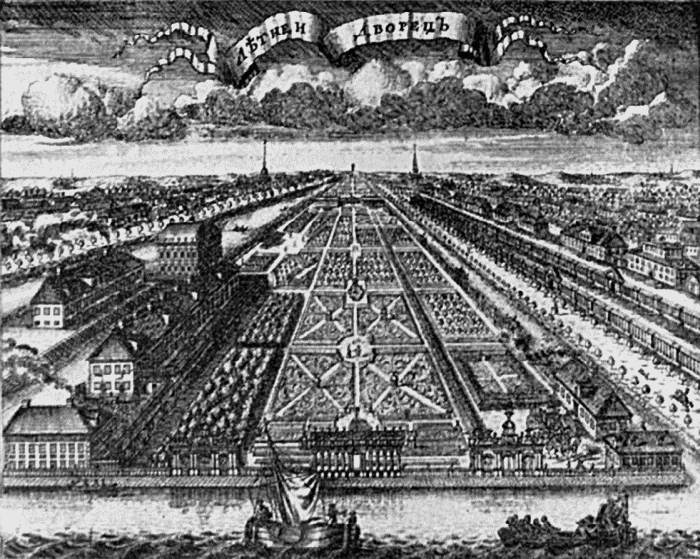 В первое десятилетие существования города одновременно с большим строительством на Городском острове было возведено немало значительных сооружений и на других островах невской дельты. Так, на левом берегу Невы, чуть ниже Заячьего острова, в 1704 году были заложены Адмиралтейская крепость и верфь, а недалеко от них, напротив домика Петра I, обширную территорию отвели для летней резиденции царя. Здесь был разбит Летний сад, а в углу его, у впадения в Неву реки Фонтанки (тогда она носила название Безымянный Ерик), в 1710–1711 годах по проекту Трезини был выстроен небольшой Летний дворец Петра. Несколько позднее, в 1713–1714 годах, к работе над переделкой дворца привлекли выписанного Петром I крупного немецкого архитектора Андреаса Шлютера, но он успел сделать немногое, так как вскоре после приезда умер.