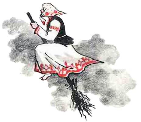 Вдруг застучало-загремело по лесу. Это баба-яга в своей ступе Домой возвращается, помелом след заметает.