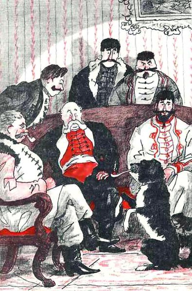 Пока думал да в затылке чесал, вышел из-за деревьев пан молодец. Жупан зелёный, шляпа с пером, сразу видно — охотник. Увидал мужика, увидал козу, увидал волка и спрашивает: