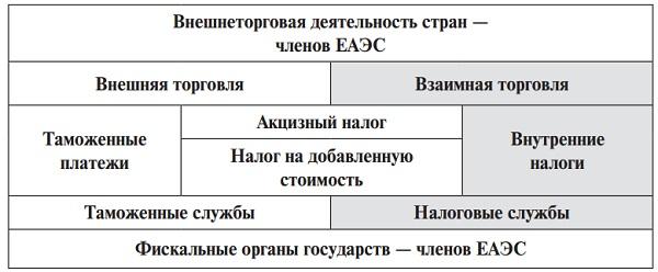 Важно иметь в виду, что в настоящее время таможенный акцизный налог, таможенный налог на добавленную стоимость и таможенные сборы следует рассматривать в контексте тех процессов, которые связаны с формированием, функционированием и развитием внутреннего (общего) рынка государств — членов Евразийского экономического союза и которые привели к четкому разграничению двух сфер внешнеторговой деятельности, а именно: