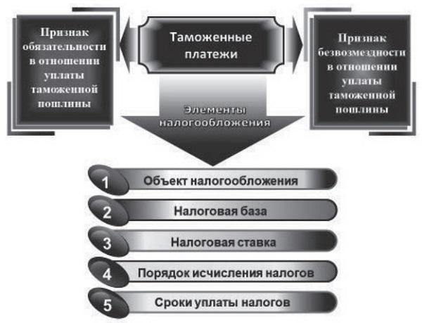 Рис. 1.5. Правовой статус таможенных платежей: базовые признаки и основные элементы налогообложения