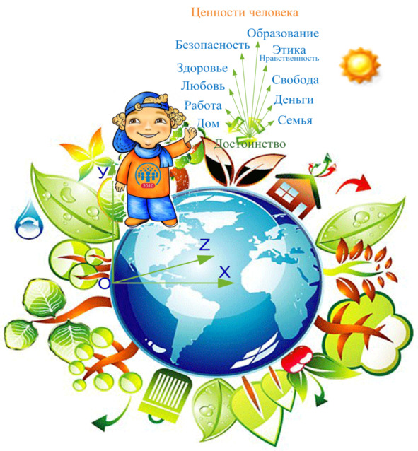 Тысяча лет для народов и стран — срок небольшой и в школе, когда я учился, при изучении истории древнего мира население России упоминается мало. Однако и Россия в некоторых областях впереди планеты всей. Мне всегда хотелось твёрдо стоять на земле. И уже в университете ко мне пришло понимание, что устойчивая жизнь получается на основе договорённостей и общего для всех людей достоинства и ценностных ориентиров, представленных на этом рисунке.