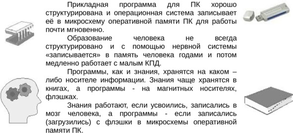 Аналогично и образование человека (результат записи образовательных программ с книг в мозг) ощущается только через его поведение и диалог с ним.