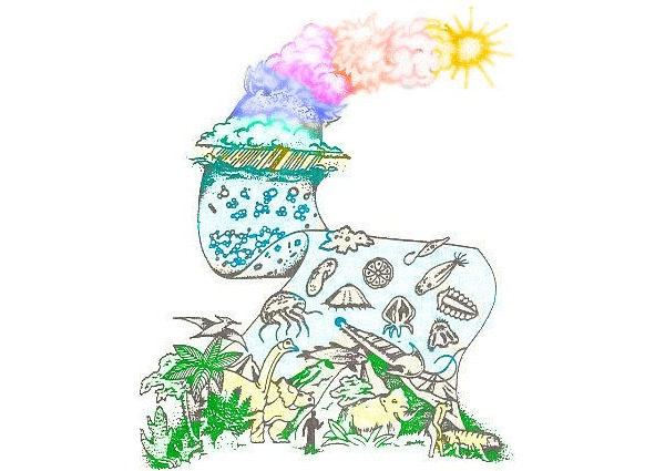 Часть воды испарилась в течение миллионов лет, суша проступила из океана и появившаяся в тёплой воде Жизнь (бактерии, микроорганизмы, рыбы и морские животные) стала её обживать.