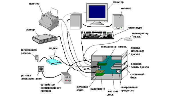 К компьютеру могут быть подключены различные устройства: