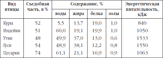 Таблица 2. Химический состав и энергетическая питательность мяса различных видов сельскохозяйственной птицы