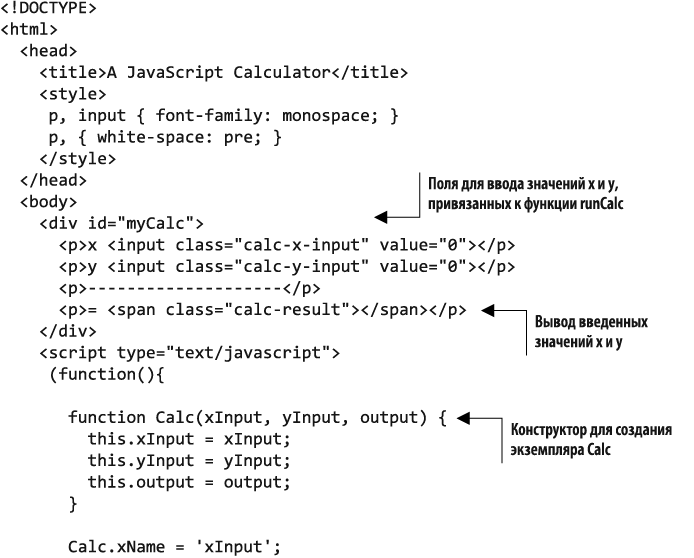 Листинг 1.1. Калькулятор на JavaScript: chapter-01/calculator.html